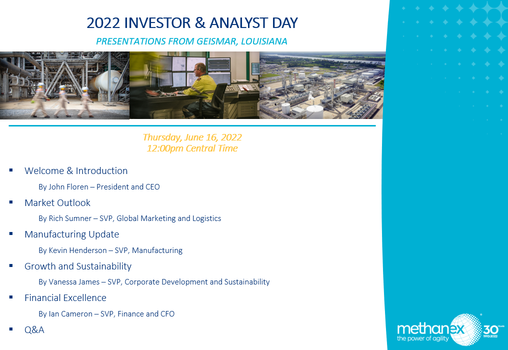 2022 Methanex Investor Day Methanex Methanex , Interested in owning shares of altria common stock?
