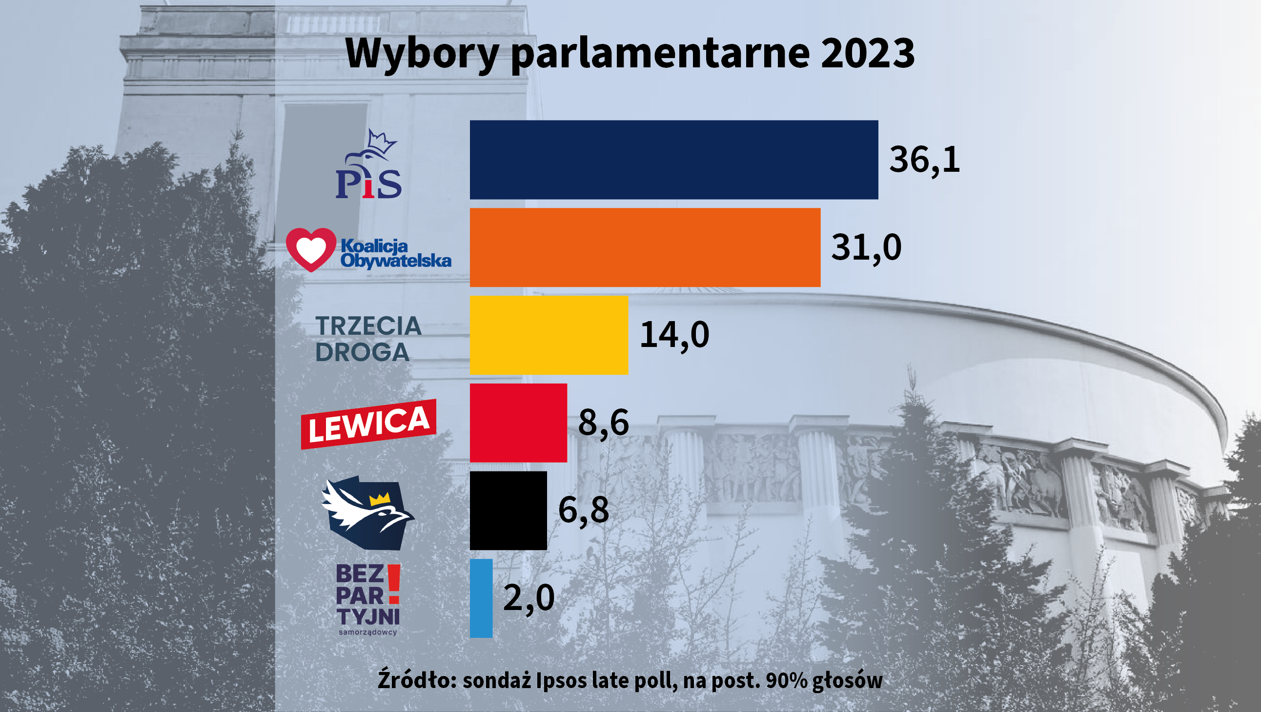 Wybory parlamentarne 2023 sondaż late poll Ipsos dla TVN, Polsatu i , Ipsos opublikował wyniki najnowszego wyborczego sondażu late poll, przygotowanego dla telewizji polsat, tvn i tvp.